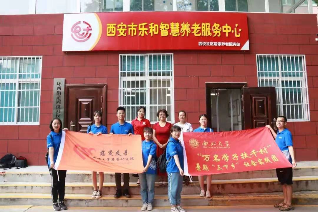 实践团与社区慈善老年大学工作人员合影