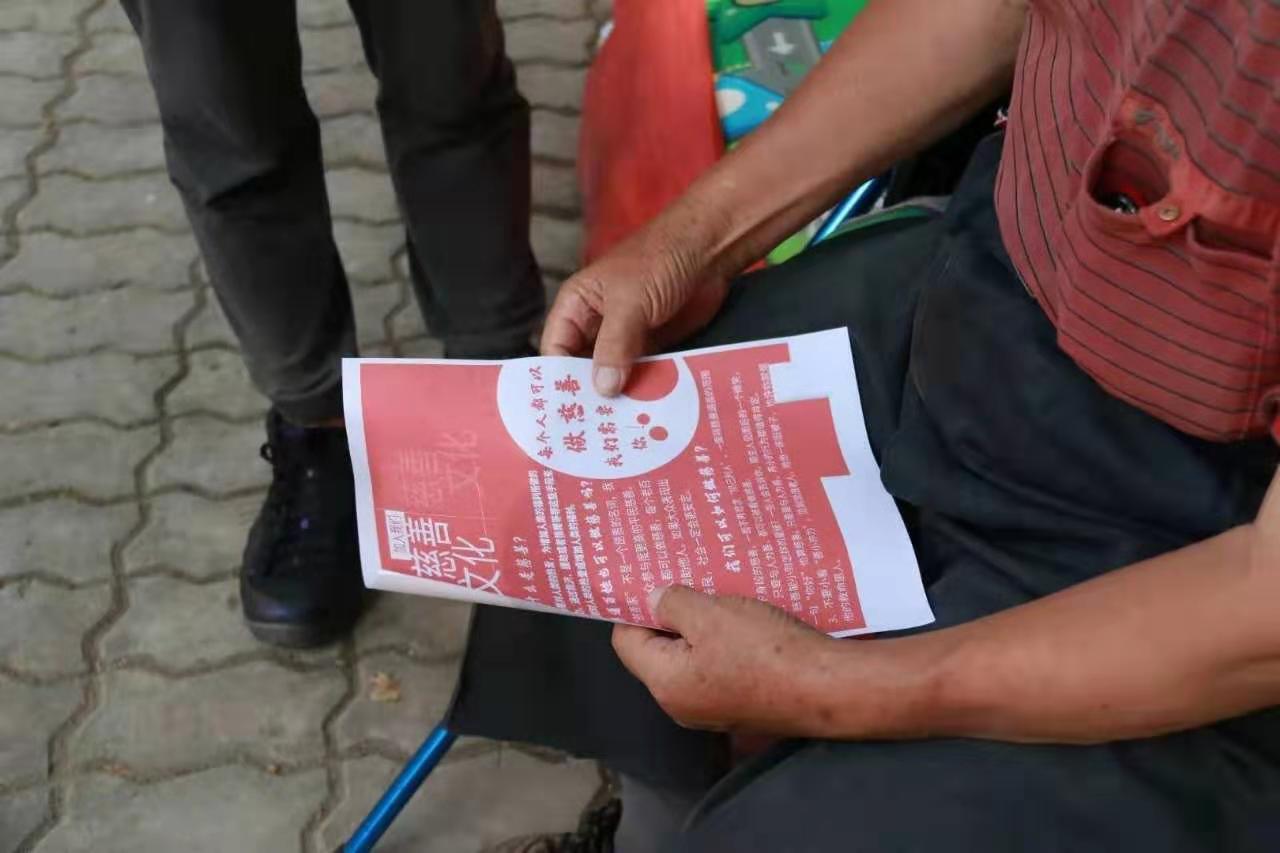 为普及慈善文化,实践团在社区街头发放了宣传单,居民对“慈善文化”表达了强烈的兴趣,并表示在今后的生活中,会尽己所能,弘扬“慈善文化”。