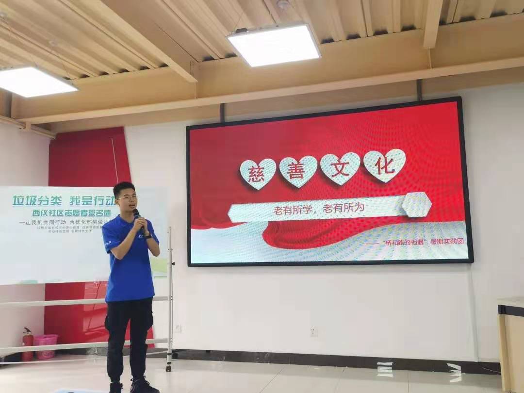 7月10日,伴着细微晨光,金年会官网“桥和路的相遇”三下乡暑期实践团到达了西安市莲湖区环西街办西仪社区慈善老年大学,开展“慈善文化”专题活动。