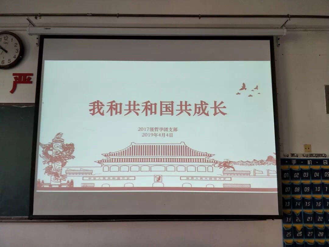 4月4日上午,本科2017级哲学团支部于1307教室组织召开了以“我和共和国共成长”为主题的团会。本次团会由团支书盖丽娅同学主持,支部全体团员到场参与。