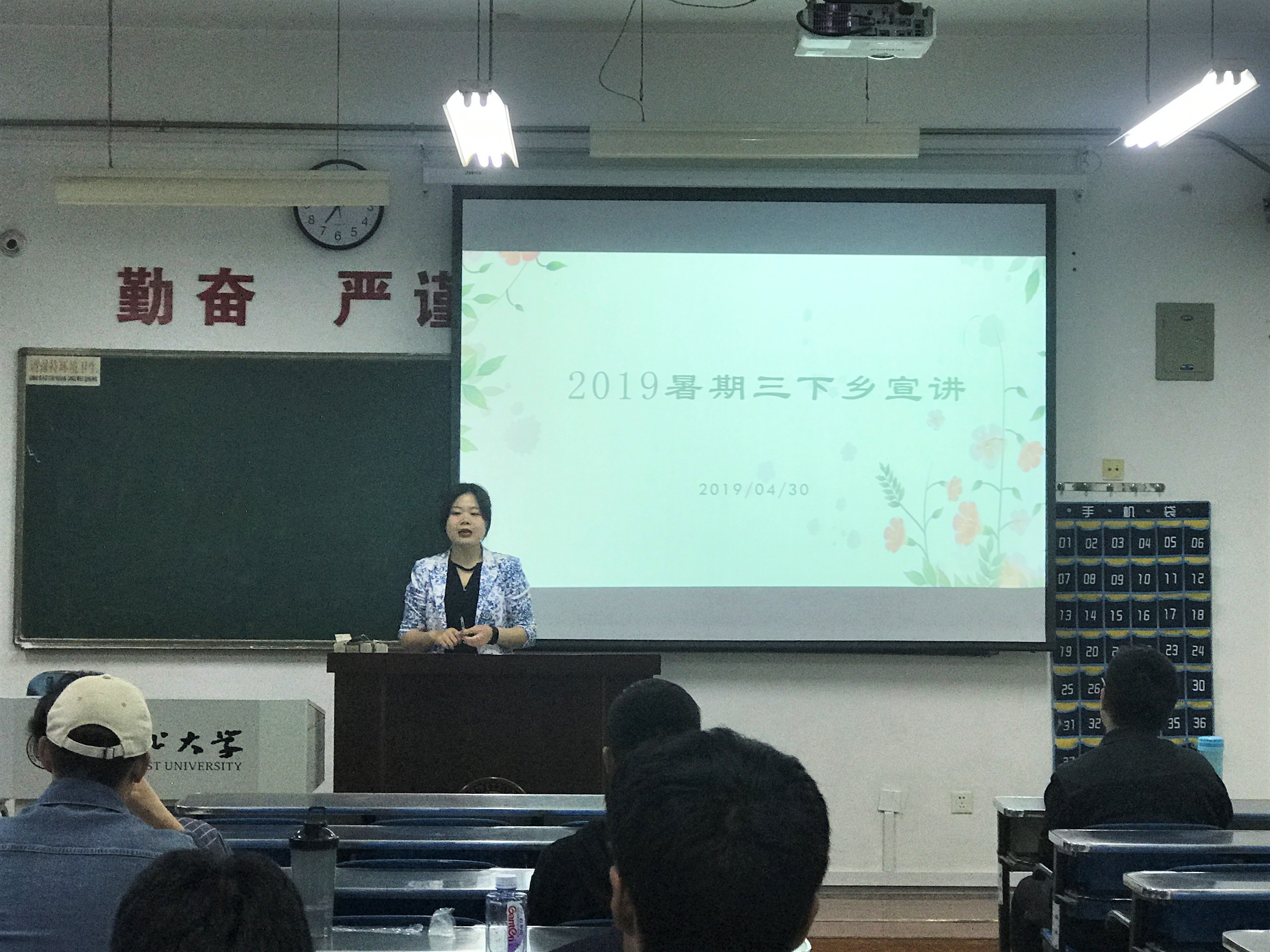 4月30日晚,金年会官网团委于1207教室召开了2019年暑期三下乡宣讲动员会,院团委书记李鑫老师、院团委副书记吴嘉琦同学出席本次活动。本次宣讲会共邀请了2018年暑期三下乡的三个团队负责人分享经验。