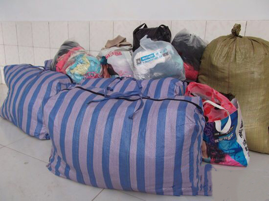 经过几个小时的努力,行知社的同学们成功收集了若干位同学捐赠的数十件各色衣物。拎着沉重的服装袋,大家却并未感到疲惫,有说有笑的将它们收入房内,等待最后的运送。