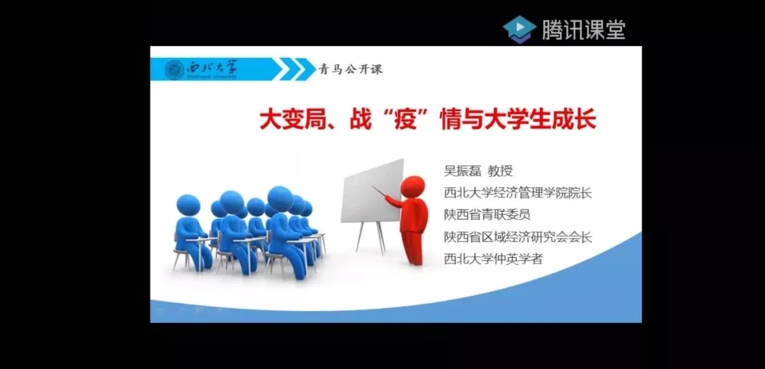 由共青团金年会诚信信誉至上委员会、金年会诚信信誉至上青年马克思主义者培养学校特别推出的“青马公开课——疫情下的中国力量”线上系列专题讲座第三讲,于4月3日晚顺利举行。我校经济管理学院院长吴振磊教授以《大变局、战疫情与大学生成长》为题,详细讲解了面对百年未有之大变局以及新冠肺炎疫情时,大学生如何实现自身发展。腾讯课堂同步直播,金年会官网团员青年积极参加了此次课程。
