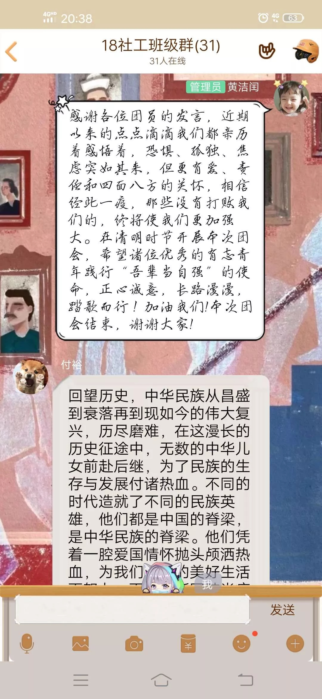 各团支部通过观看视频、学习新闻等方式了解、回忆了革命先辈的英雄故事、抗击疫情斗争中的英烈故事等等,以引导团员们深刻体会英烈精神,牢记他们心怀家国的伟大理想。