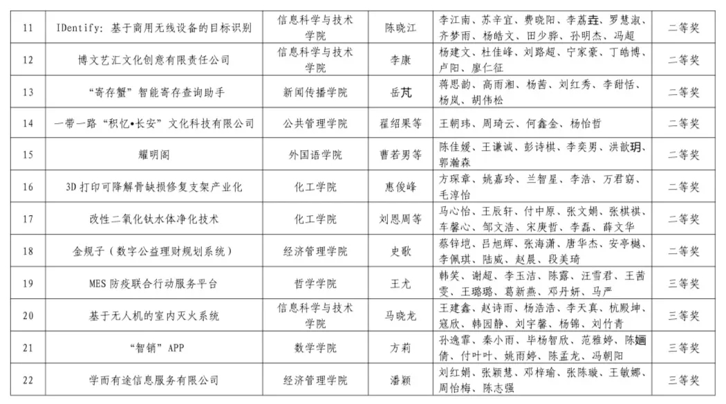 根据《金年会诚信信誉至上关于举办2019年“创青春”大学生创业大赛的通知》安排,本次大赛共计收到来自20个院(系)和单位的264个参赛项目(含疫情防控直通项目),直接参赛师生2000余人。经院(系)预赛、校级复赛和校级决赛,金年会官网一共获奖两项,具体如下: