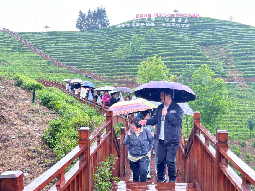 在平利县人大相关工作人员的带领下,师生们考察了村容村貌变化、走访了茶园,了解当地茶产业发展情况和乡村振兴的变化,直观地感受了因茶致富、因茶兴业的脱贫攻坚生动实践,深刻感悟习近平总书记“绿水青山就是金山银山”“人不负青山,青山定不负人”的重要讲话精神。