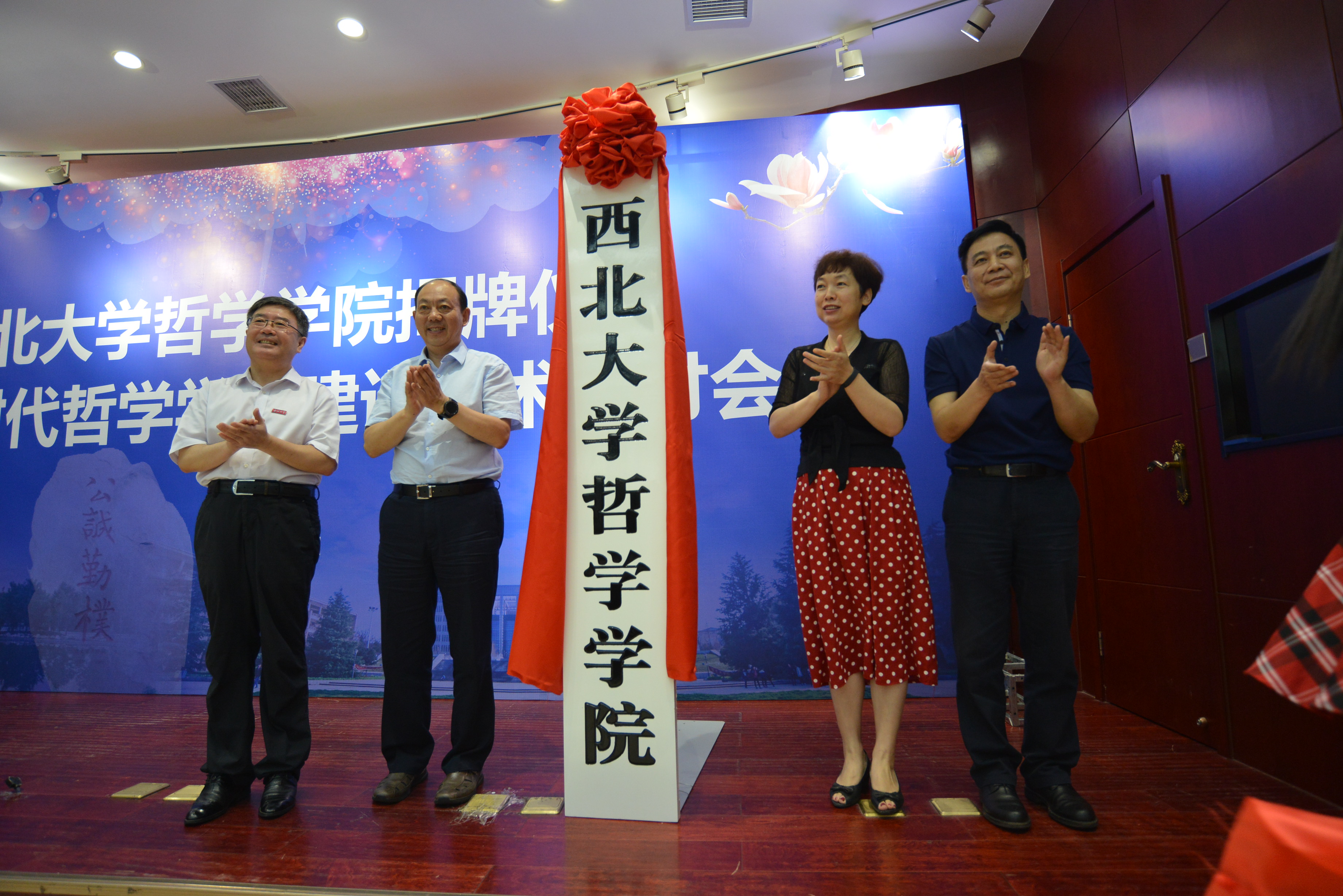 7月5日上午,金年会jinnianhuicom揭牌仪式暨新时代哲学学科建设学术研讨会在太白校区举行。金年会诚信信誉至上党委常委、副校长王正斌宣读学院成立文件。省委高教工委书记董小龙、省社科联学会部部长梁亚娟,金年会诚信信誉至上党委书记王亚杰,校长郭立宏共同为金年会jinnianhuicom揭牌。省内有关部门、相关研究单位、兄弟院校、省级学会专家学者及校内师生代表200余人参加大会。揭牌仪式由金年会诚信信誉至上党委常委、副校长常江主持。
