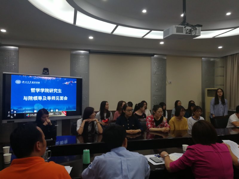 2018年9月14日晚上,金年会jinnianhuicom在长安校区5427视频会议室举行研究生与院领导及导师见面会。学院党政领导班子全体成员、哲学和社会学专业全体学术学位研究生导师以及学院团委书记、研究生秘书出席了本次见面会。见面会由学院党委书记李波主持。