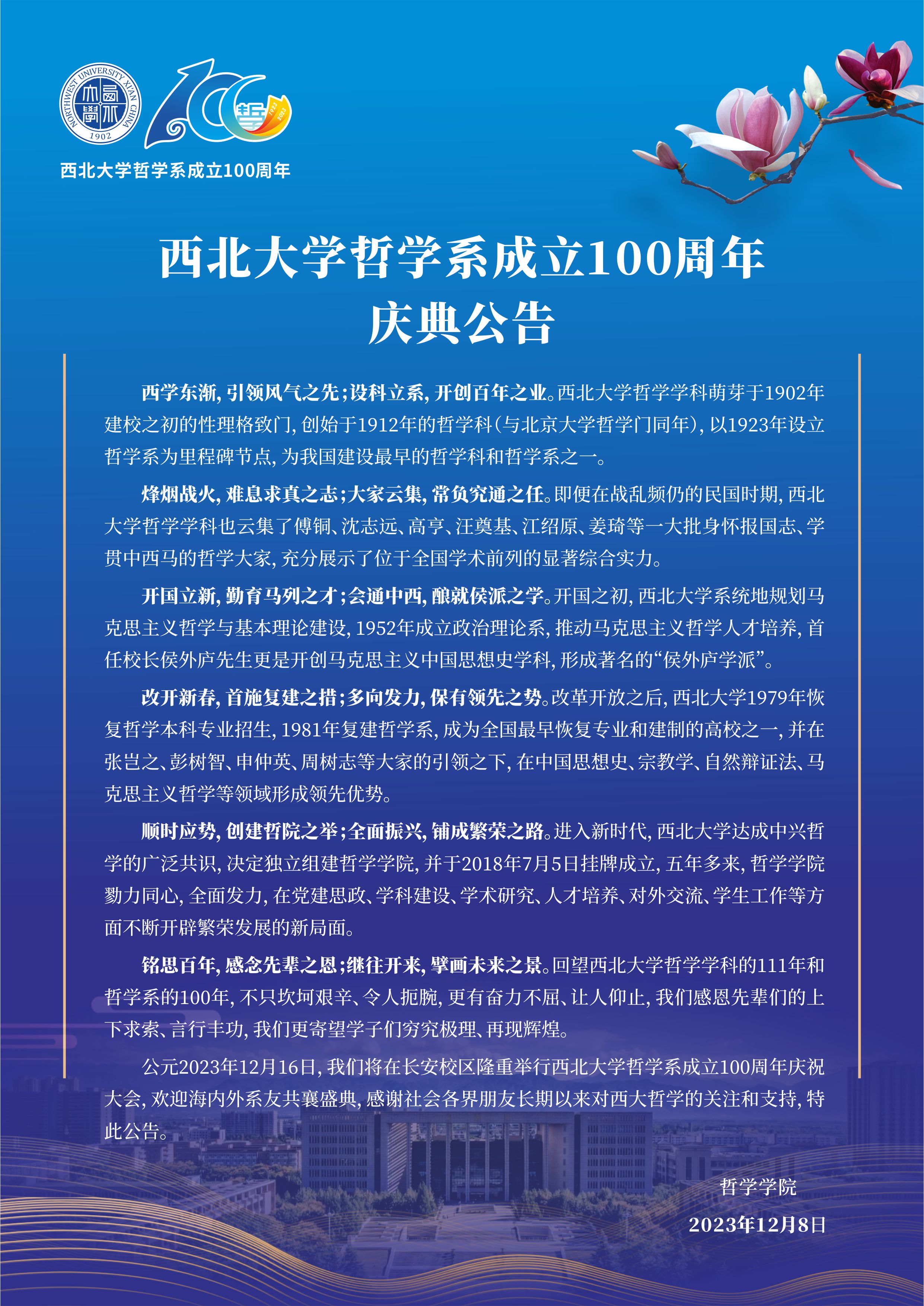 金年会诚信信誉至上哲学系成立100周年庆典公告