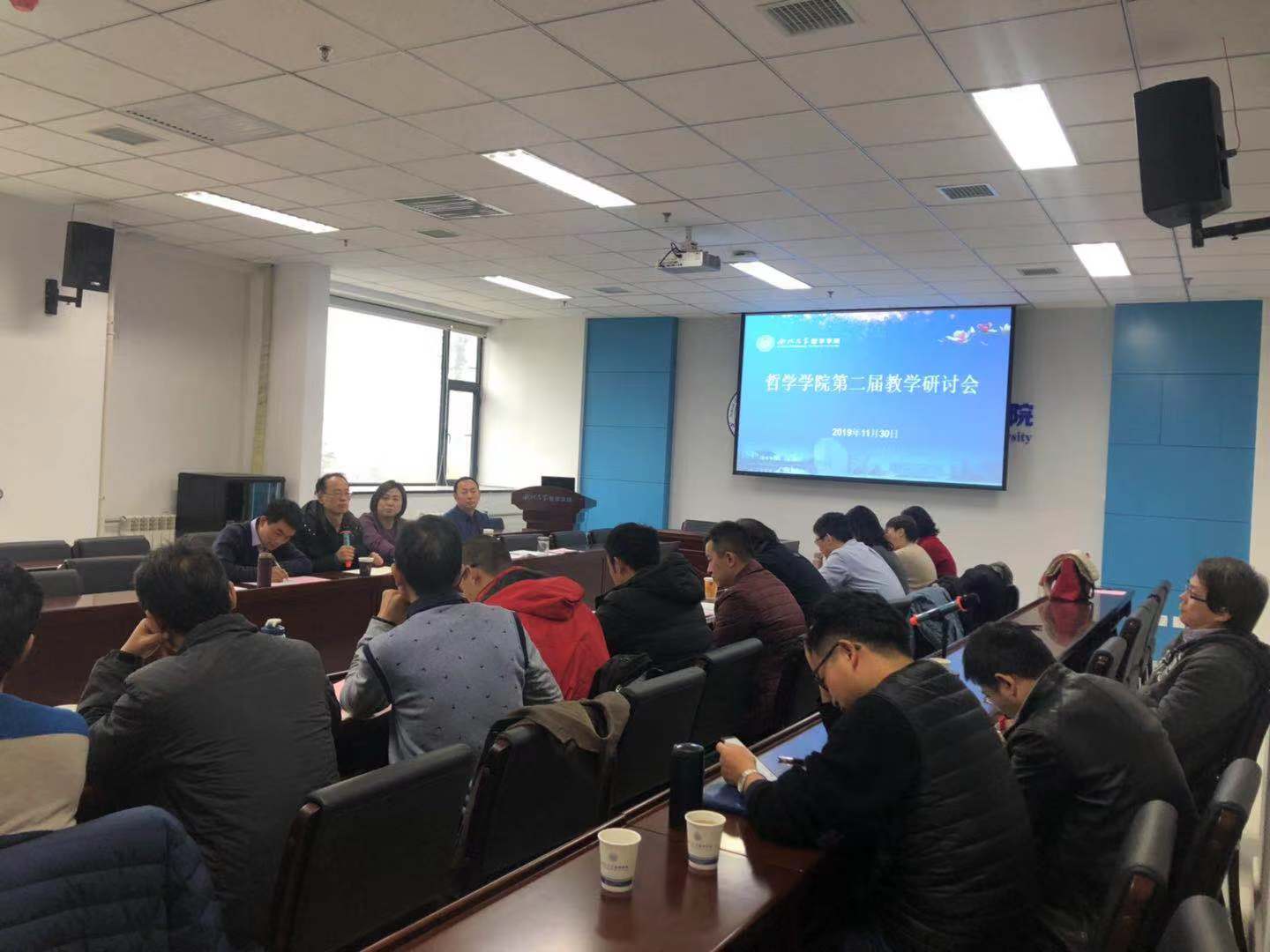 为促进金年会jinnianhuicom教学工作高质量开展,2019年11月30日上午8:30,在学院三楼会议室召开了主题为“理念与方法”的第二届教学研讨会。学院党政领导班子全体成员和哲学系、社会学与社会工作系的教师代表参加了此次研讨会,会议由胡军良副院长主持。