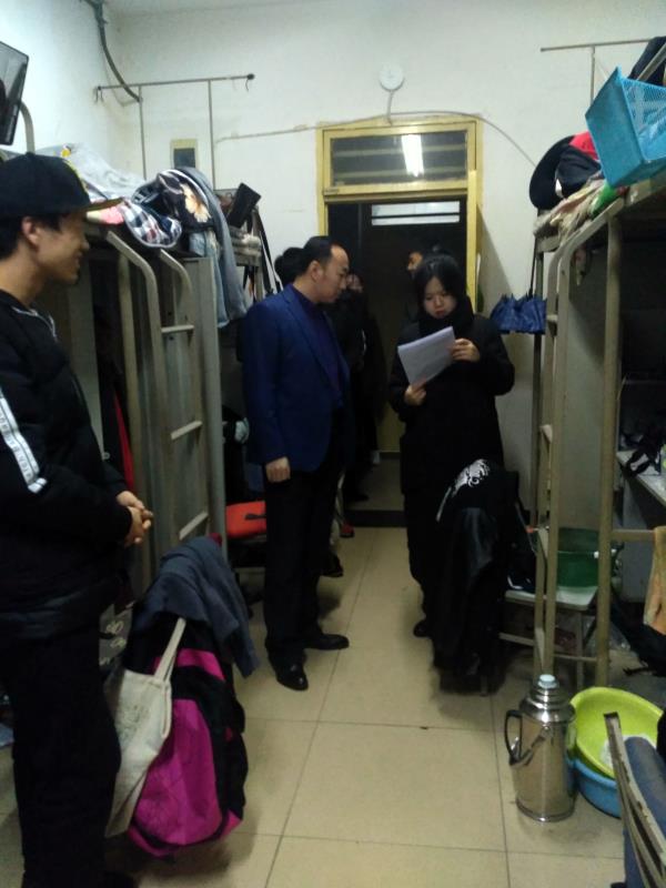 晚上7点,院党委副书记王军老师,团委书记李鑫老师,辅导员房晓老师带领院学生骨干对全院学生宿舍进行了安全检查,重点围绕学生返校情况、宿舍卫生状况、违规使用电器等进行了检查。同时,全面真实地了解和关怀学生假期生活及返校心理状况。