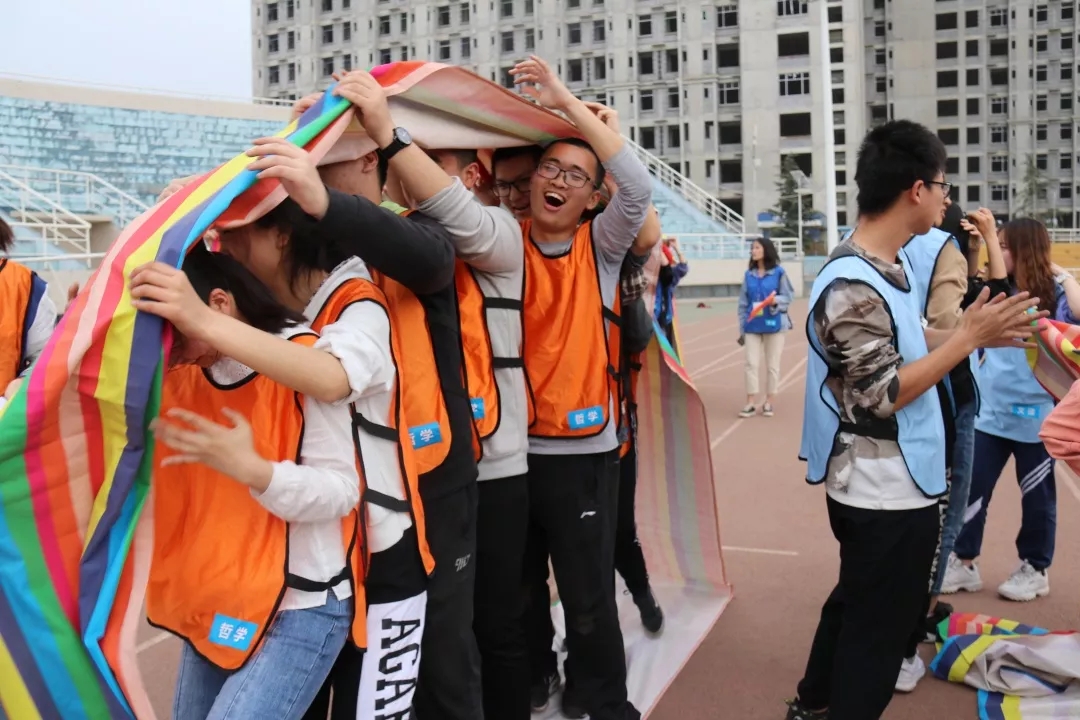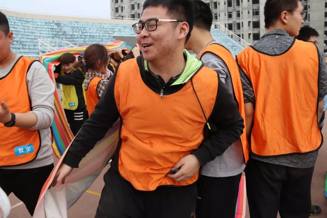启动仪式结束后,各院系学生代表到西操场参加综合素质拓展活动,金年会jinnianhuicom派出 8 位同学和2 位裁判0.8 名同学组成“ 冥想者” 代表队,队伍名称体现了哲院学子们冷静,稳重的品质,也蕴含了稳中就进,智慧取胜的目标。队员们展露出自信的笑颜,以饱满的热情迎接这场趣味与挑战并存的比赛。