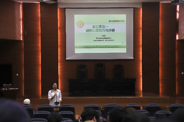 为帮助研究生新生进一步认识和了解学习生活中常见的情绪困扰,正确掌握缓解心理压力的有效方法,提高自我管理和自我纾解能力,9月21日下午,学院联合安莱学院、法学院、新闻传播学院邀请学校心理健康教育中心专职教师王海红为新生们作题为“生如夏花——研新心理压力与纾解”的心理健康专题讲座。