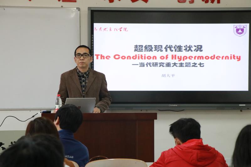 4月28日,南京大学胡大平教授以“超级现代性状况”为题,介绍了现代性之创造性破坏机制和当代人类生存经验多重矛盾的成因和实质。他指出,超级现代性话语认为,当前现代性发展到了 “超级的”、“过度的”、“极端的”状态,时空经验和人的生存都处在一种灾变的临界点上。他通过介绍维希留、鲍德里亚、利波维茨基、奥热以及许多新技术批判理论家的观点,详细讲解了他们是如何定义新的现实,重估人类自由条件,扩大时代分析的理论视野的。