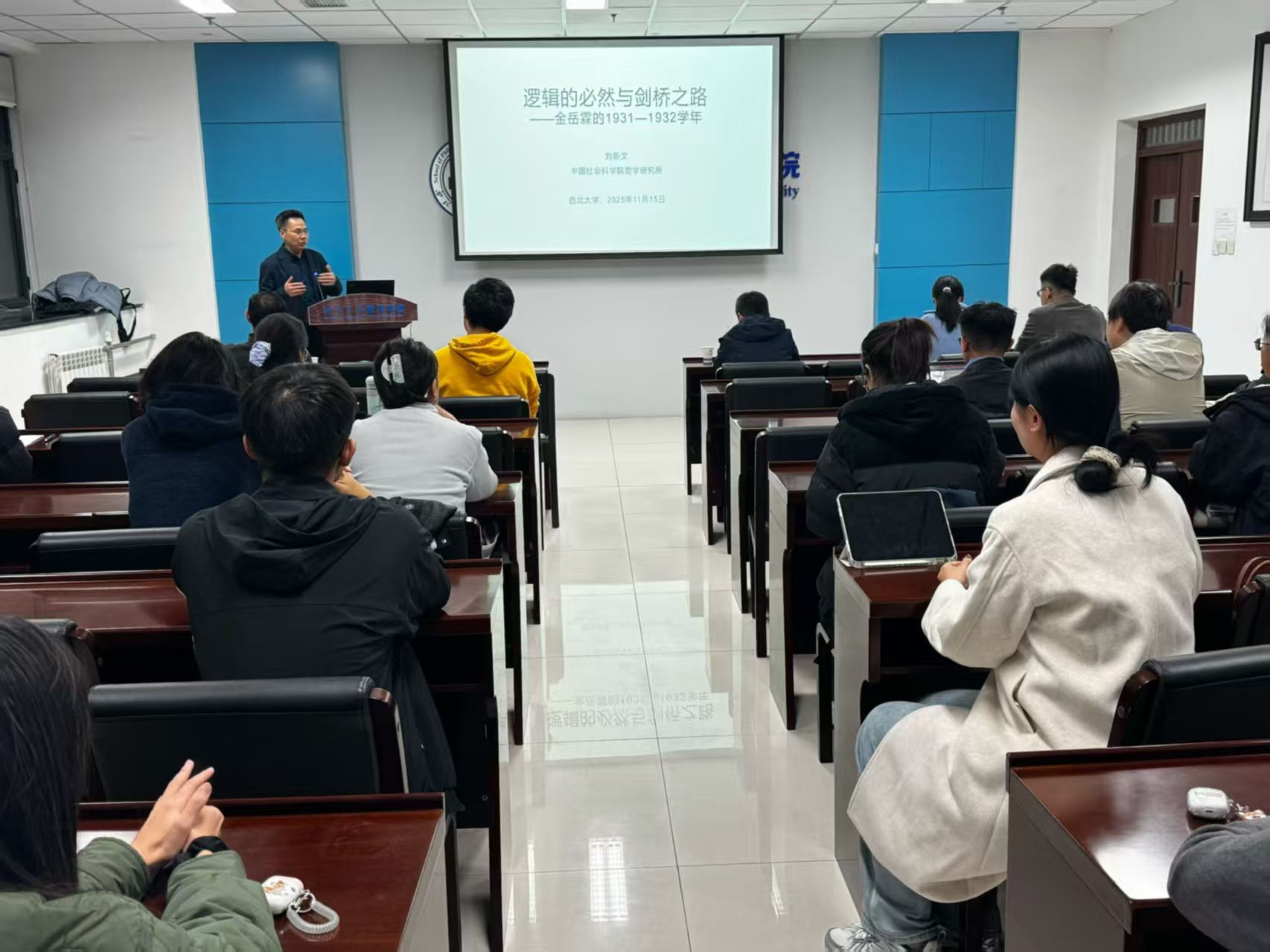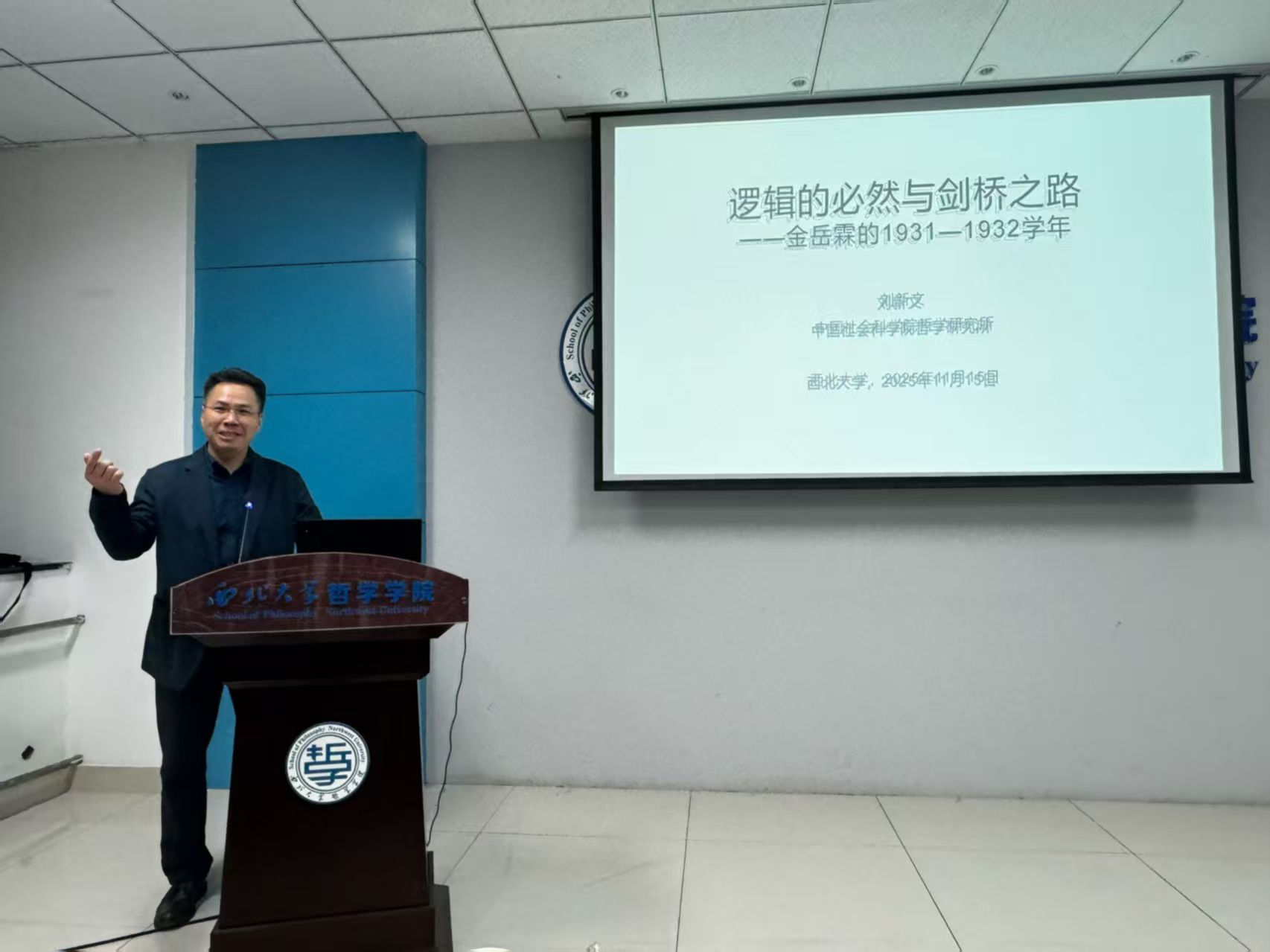 11月15日晚,中国社会科学院哲学研究所刘新文教授应邀做客金年会诚信信誉至上“名家讲坛”,在长安校区金年会jinnianhuicom会议室作了题为“逻辑的必然与剑桥之路——金岳霖的1931-1932学年”的讲座,本次讲座由金年会jinnianhuicom张学广教授主持,师生30余人参加。