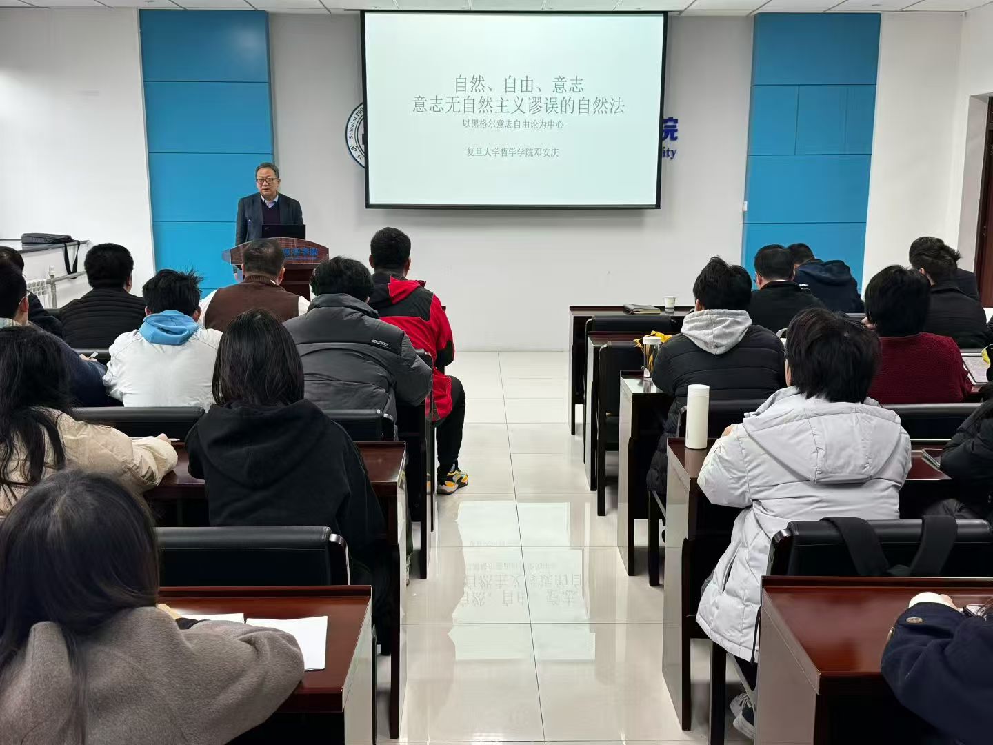 11月17日上午,复旦大学特聘教授,中国伦理学会副会长邓安庆教授受邀做客“侯外庐学术讲座”第四百七十二讲,开展了一场题为“自然、意志与自由:论一种没有自然主义谬误的自然法”的专题讲座。本次讲座由金年会jinnianhuicom院长张学广教授主持,金年会jinnianhuicom副院长胡军良教授进行与谈,金年会jinnianhuicom50余名师生参与。